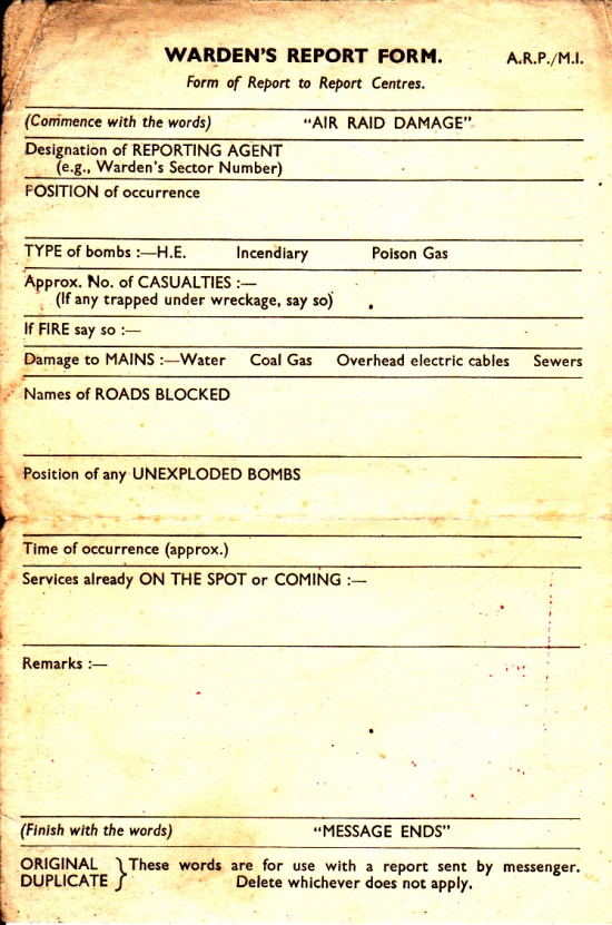 Warden’s Report Form Front and Rear - the rear comprising an “Express” Report